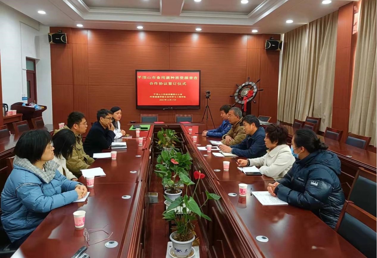 为高质量完成平顶市食用菌种质资源普查工作,充分发挥高校人才优势,加强政校合作,12月17日上午平顶山市人民政府蔬菜办公室与beats365官方网站beats365,在该院会议室举行了平顶山市食用菌种质资源普查合作签约仪式。仪式上,市蔬菜办主任程国强对食用菌种质资源普查工作的意义与重要性作了详细说明,并对普查工作提出了具体、明确的要求。beats365副经理谢朝晖对市蔬菜办领导的信任与支持表示感谢,他简要介绍了食用菌种质资源普查团队的人员和工作计划,并强调beats365将高标准、严要求,全力以赴做好平顶山市的食用菌种质资源普查工作。