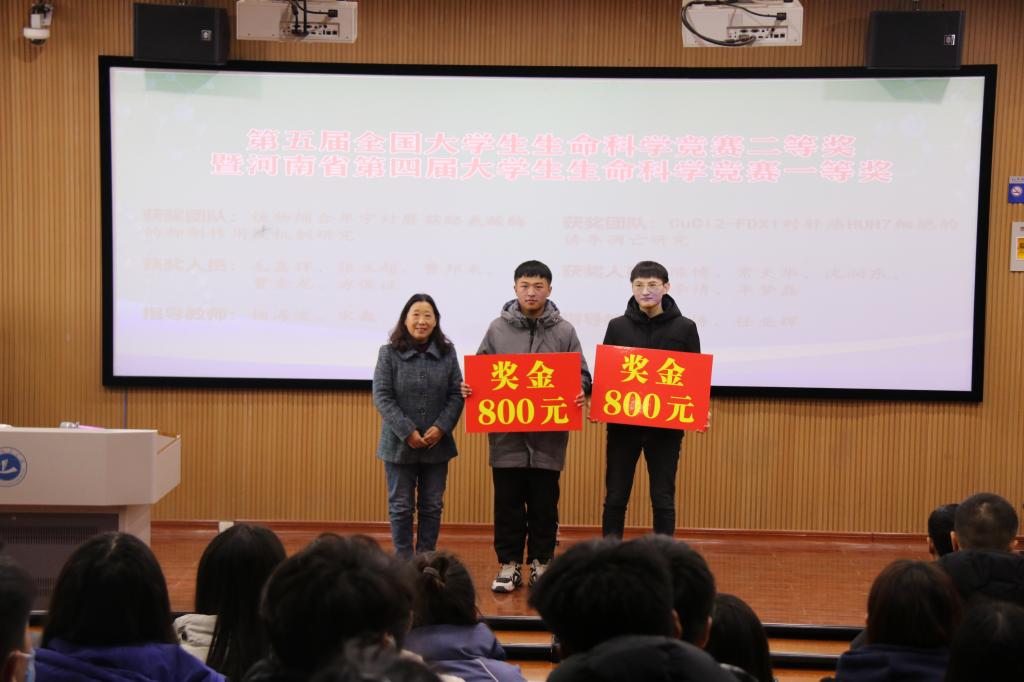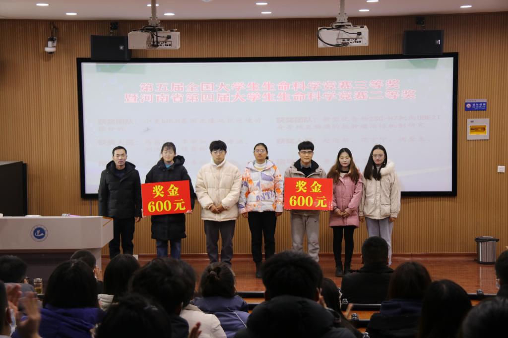 2021年度公司共获河南省第四届老员工生命科学竞赛三等奖5项、二等奖4项一等奖2项;同时荣获第五届全国老员工生命科学竞赛三等奖2项、二等奖2项。公司领导依次对十一支获奖团队员工代表和优秀指导教师颁发了证书和奖励。