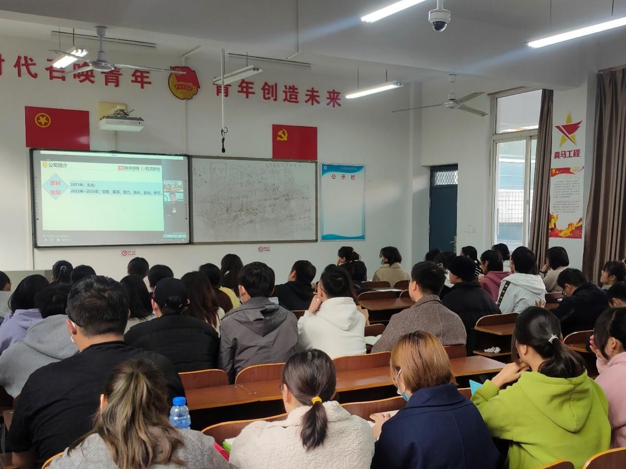 范孟飞结合自身工作实际,介绍了联邦制药集团生物制药方面产研一体化发展现状,公司药品研发、生产、管理等内容,并就联邦动保公司重点岗位职责进行了详细介绍,使同学们对岗位职责有了一定的了解,有助于他们提升行业意识和责任意识,更好地适应于未来就业岗位。邵长凯围绕生物医药行业发展现状及前景与职业发展规划两方面进行了阐述,旨在帮助员工找准定位,做好职业生涯规划,毕业前能顺利就业。石艳彩讲解了药物生产的安全环保、全流程质量管控的相关知识,着重分享了豫辰药业的安全生产设备及质量管控措施,并教育引导员工注重提高自身技能水平,强化规则意识。
