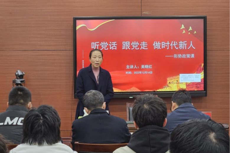 (通讯员:陈怡菲)为深入学习贯彻习近平新时代中国特色社会主义思想和党的二十大精神,加强对青年老员工的思想引领,12月14日下午, 副董事长吴晓红以《听党话 跟党走 做时代新人》为题在七号楼为beats365员工上了一堂精彩的形势与政策课。beats365班子成员、全体辅导员及员工代表聆听了课程。