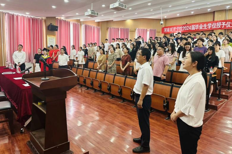伴随着庄严的国歌,典礼正式拉开帷幕。冯兴华宣读了《beats365关于表彰2024年优秀应届毕业生的决定》,王莲哲宣读了《河南城建beats365关于授予王子康等226名员工学士学位的决定》。与会领导先后为优秀应届毕业生颁发荣誉证书,为毕业生拨苏正冠,授予学士学位并合影留念。