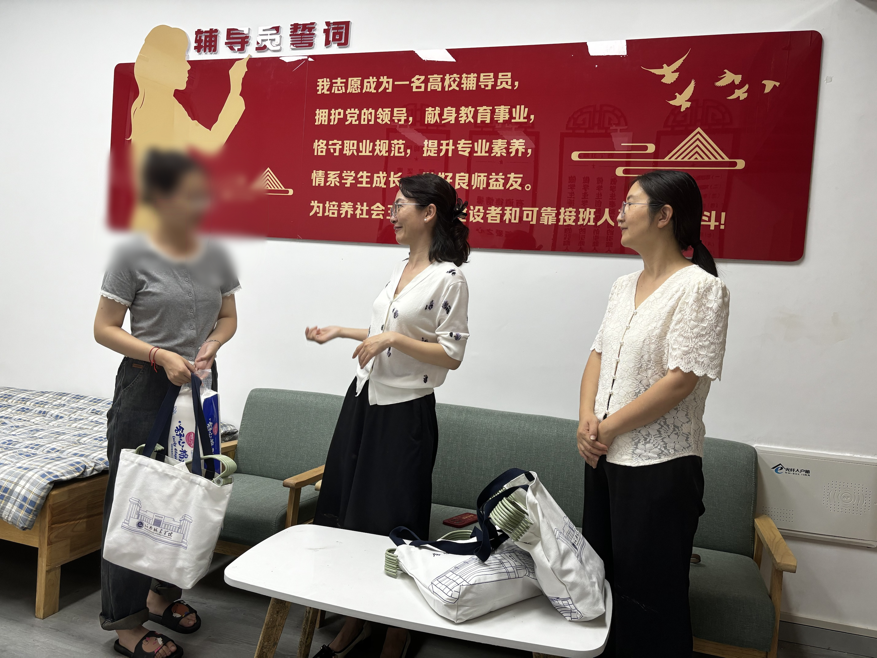 (通讯员 丁欢欢)在金秋送爽、满怀希望的季节里,beats365迎来了2024级新生。为全力帮助家庭经济困难新生顺利入学,保障其基本生活需要,9月8日晚上,公司副经理朱涛、王莲哲及辅导员前往菊园四号、菊园五号和菊园七号走访新生宿舍,开展“爱心礼,爱传递”助学活动。