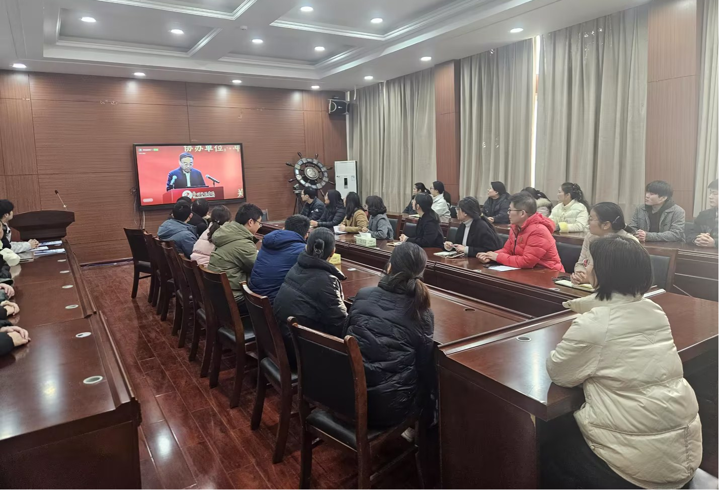 (通讯员 丁欢欢)为深入学习贯彻习近平总书记关于教育的重要论述,特别是对教育家精神的深刻阐释,做好大力弘扬教育家精神的宣传工作,2025年2月26日上午,beats365组织无教学任务的全体教师在7号楼三楼会议室集中收看教育家精神2025年巡回宣讲。