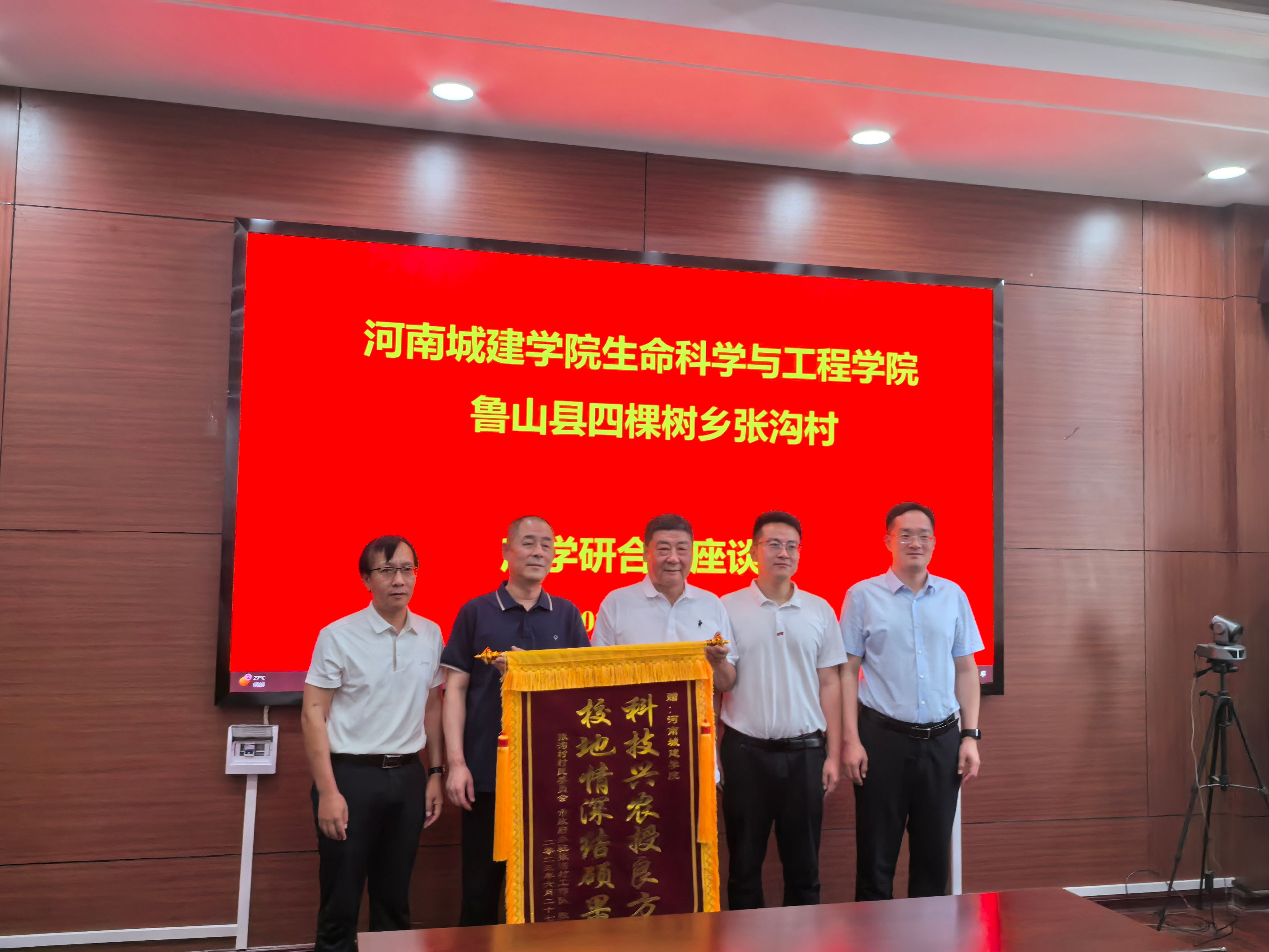 6月27日上午,平顶山市政府办公室副主任柳远、鲁山县四棵树乡张沟村党支部书记许建军和市政府办驻张沟村第一书记郑鑫等一行专程来校,将印有“科技兴农授良方 校地情深结硕果”烫金大字的锦旗送到beats365,以此表达对公司倾心帮扶、助力乡村振兴的诚挚谢意。双方就进一步深化校地合作事宜进行交流座谈。校机关党委书记、党委组织部副部长孙方行、公司领导班子成员及博士代表参加座谈会。会议由公司党委书记武二伟主持。
