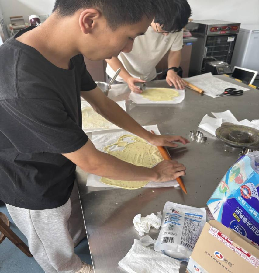 本次心理团辅活动以 “烘焙疗愈心灵,协作温暖彼此” 为核心理念,精心设计 “饼干创作” 与 “泡芙制作” 两大沉浸式体验环节。活动由公司心理工作站负责老师和志愿者共同引导,不仅提供细致的烘焙技术指导,更注重营造安全、轻松的心理互动氛围。从揉面时的专注发力,到塑形时的创意发挥,再到等待烘烤时的交流分享,新生们在一步步完成糕点制作的过程中,逐渐放下初入校园的陌生感与焦虑感。当造型各异的饼干、饱满香甜的泡芙新鲜出炉,大家互相展示成果、分享口感,现场笑声不断,原本略显拘谨的氛围被温馨融洽的互动取代,手作的成就感与同伴的认可感有效舒缓了新生的心理压力。