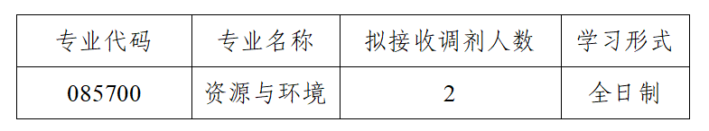 公司2025年拟接收硕士研究生资源与环境专业调剂考生,如下:
