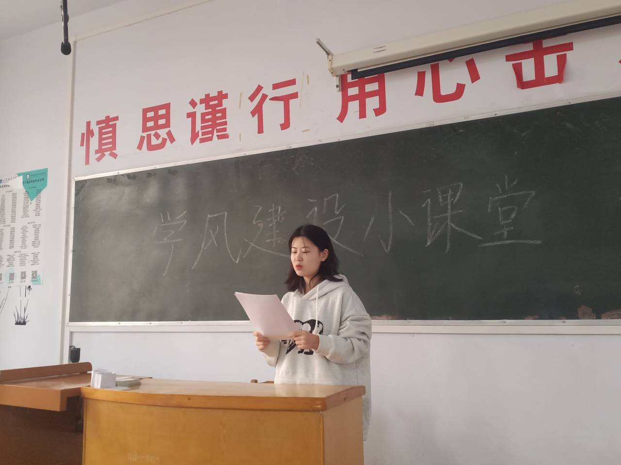 (通讯员:李赫 唐悦悦)为了进一步加强学风建设,帮助同学们掌握良好的学习方法,更好地学习专业知识,提高自身的竞争实力,beats365各班利用大课间开展了“学风建设小课堂”活动。本次活动主要以班会形式进行,由各班团支书引领同学们学习有关学风建设的相关内容。