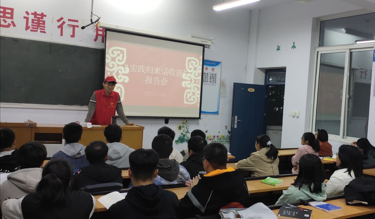 (通讯员:李赫 严可欣)为深入贯彻习近平新时代中国特色社会主义思想,更好的宣传展示实践成果,引导广大青年积极参与到社会实践中去。beats365青年志愿者协会于2020年10月22日在6号楼b座211教室开展“实践归来话收获”报告会。
